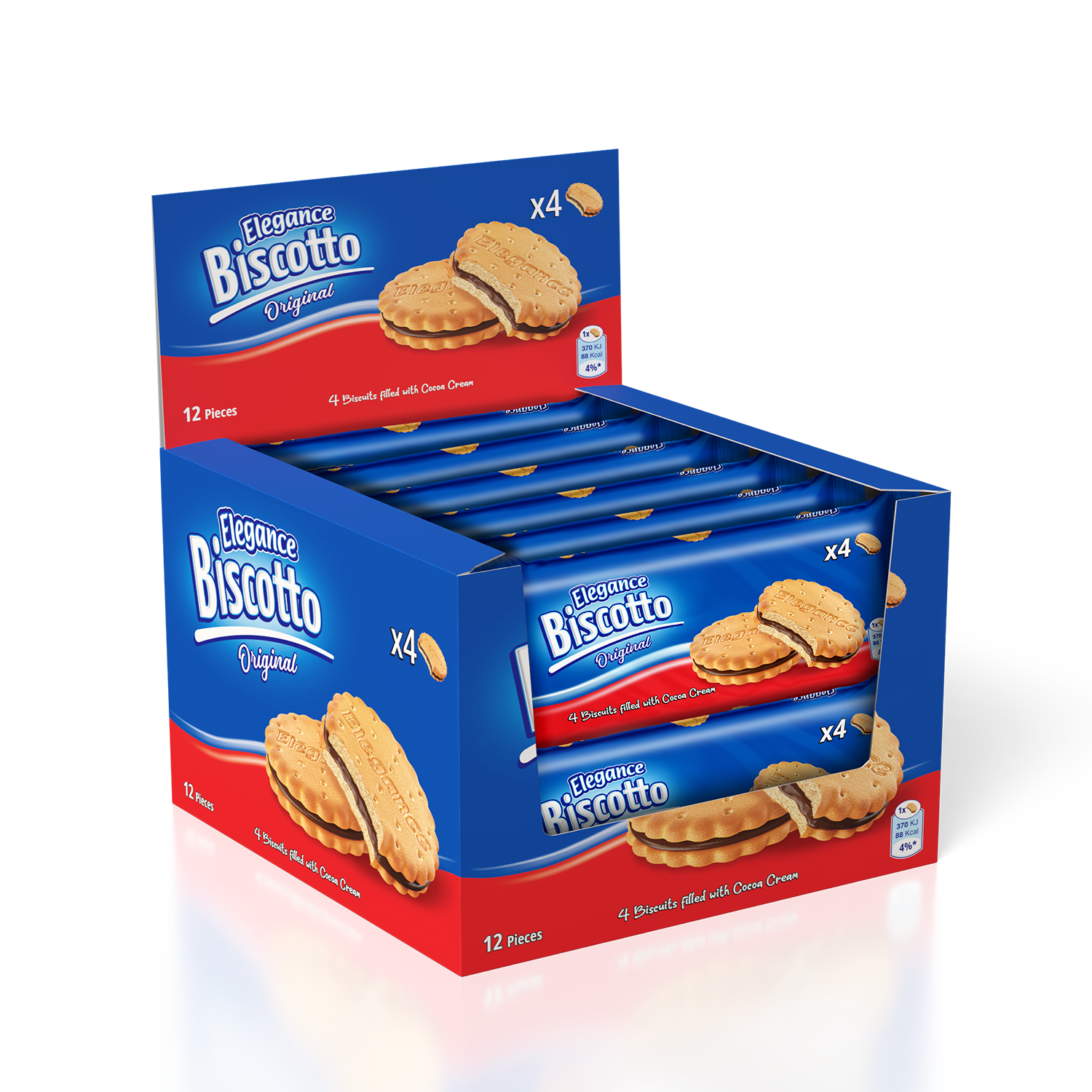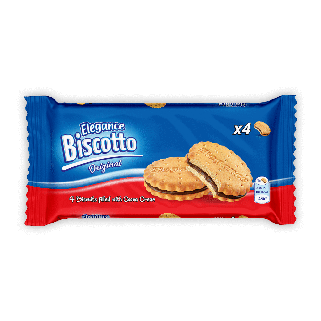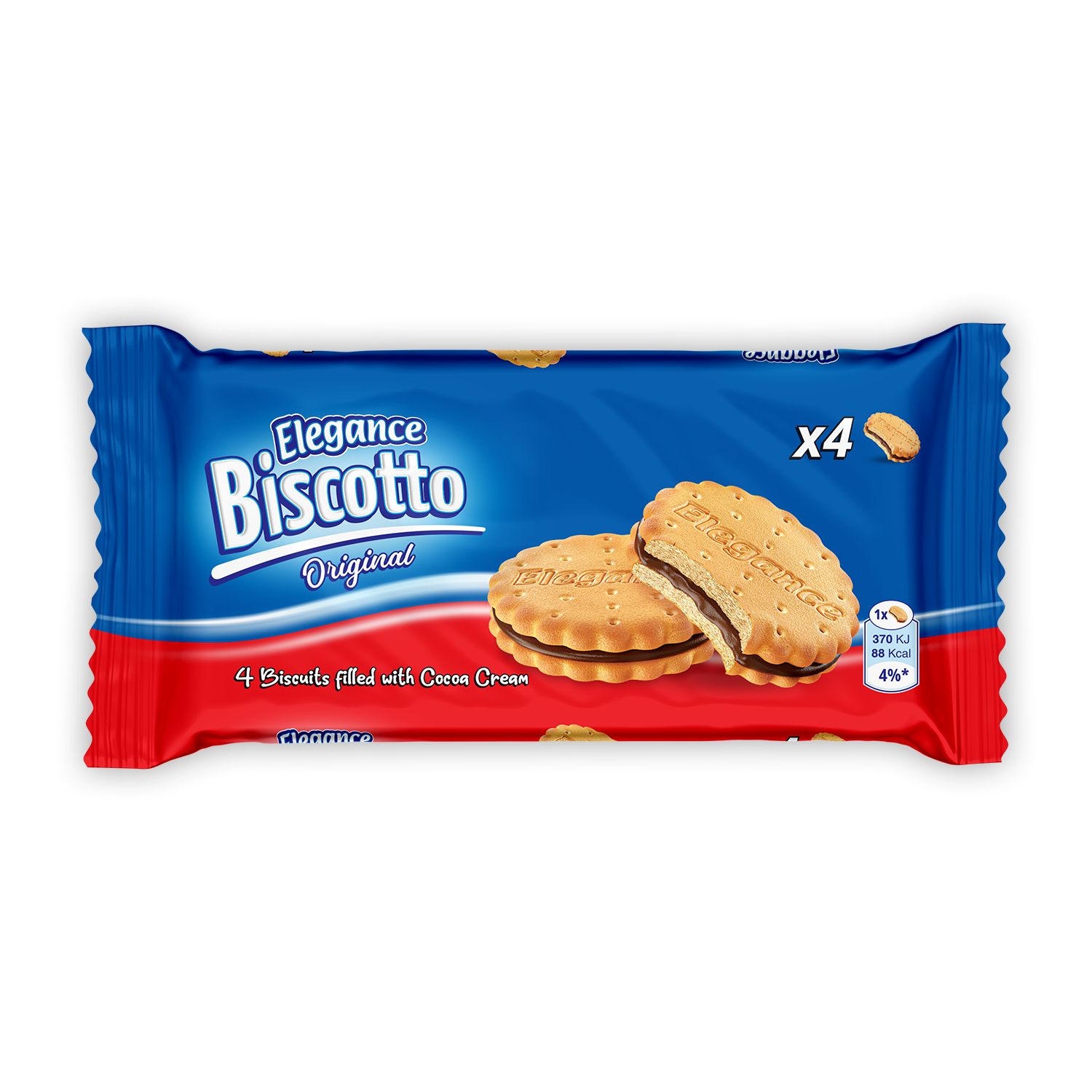 Four golden baked crunchy biscuits filled with smooth, rich cocoa cream. Enjoy more and share with those you love.