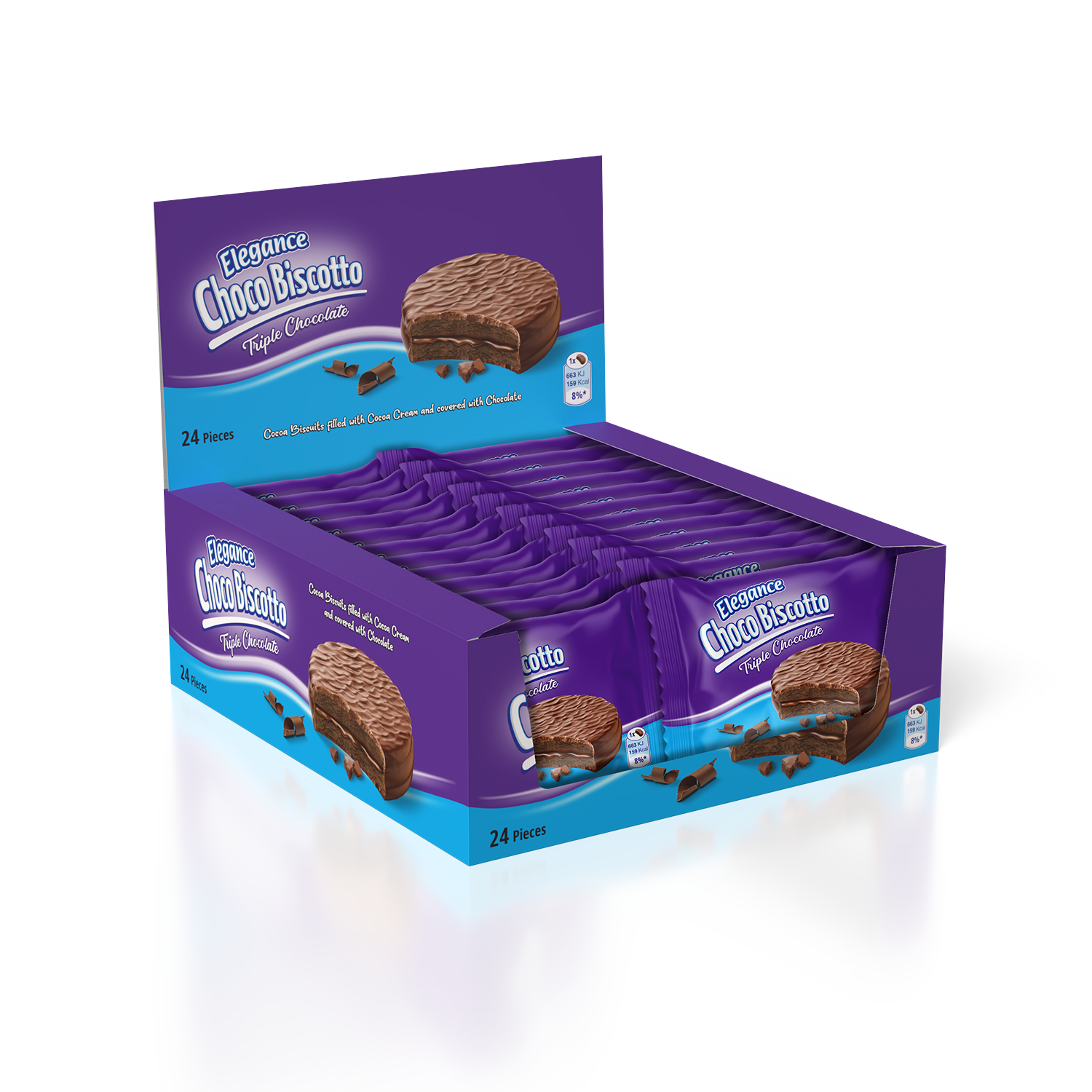 Deeply rich cocoa biscuits embrace a silky cocoa cream filling, all enrobed in a smooth chocolate coating. A truly decadent and intensely chocolate experience.
