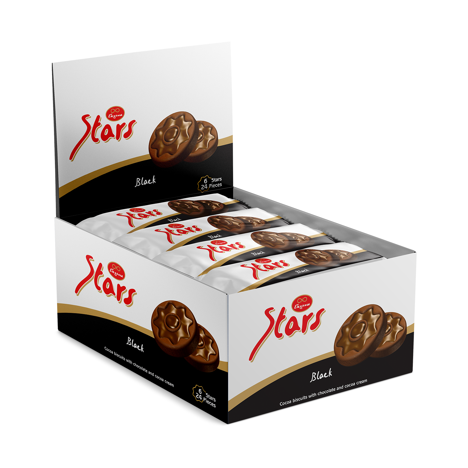 For the chocolate lover: crispy, dark cocoa biscuits embrace a rich chocolate swirl and a velvety cocoa cream center. An intense star of flavor.